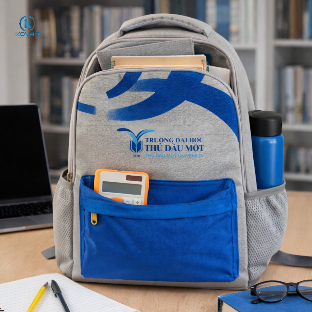 Với kinh nghiệm sản xuất balo theo yêu cầu cho nhiều đơn vị giáo dục, KOVAS gợi ý mẫu balo tân sinh viên phù hợp với định hướng hình ảnh của Đại học Thủ Dầu Một, đảm bảo tính nhận diện, bền đẹp và chi phí tối ưu khi đặt số lượng lớn.